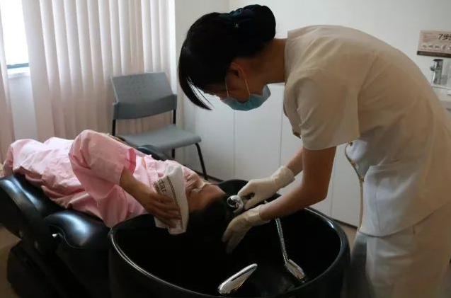 (护士小姐姐给李靓洗头)