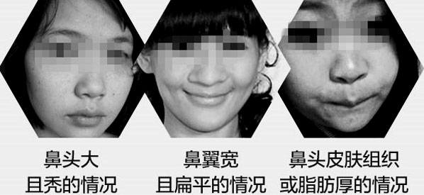 宽大的鼻梁给人厚重、笨拙的感觉,且面部失去柔和美。需要@@对具体的宽鼻情况,进行@@对性矫正。