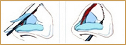 切除过长的鼻中隔软骨:通过中隔前缘纵形切口,切出不同方向过长的中隔软骨,以矫正相应部位的隆起畸形。