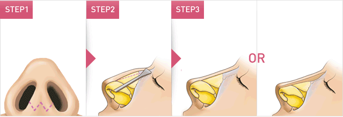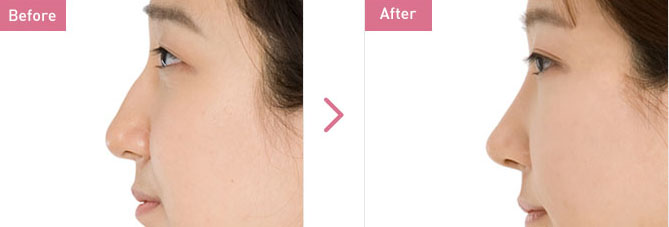 将鹰钩鼻切骨后,利用硅胶等假体将鼻梁垫高,或者只对眉间部位利用自体软骨或者真皮垫高后形成好曲线。
