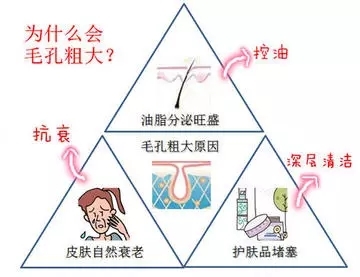 1油脂过于旺盛:油脂分泌过剩无法及时代谢出去,会使得油脂堆积在毛囊里,膨胀毛孔,毛孔就会渐渐粗大了。