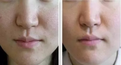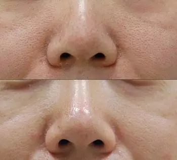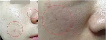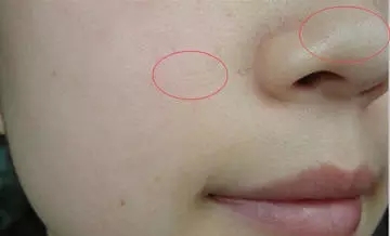 (一次光子嫩肤后的效果,鼻翼两侧包括鼻头的毛孔都平滑了很多。)