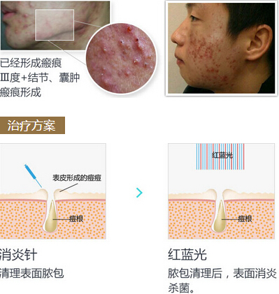 症状:爆发型痘痘,痘印痘坑