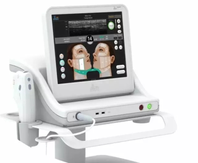 超声时光系统本质上是一款高强度超声波仪,利用超声波的热能效应来诱导深层胶原蛋白的再生。