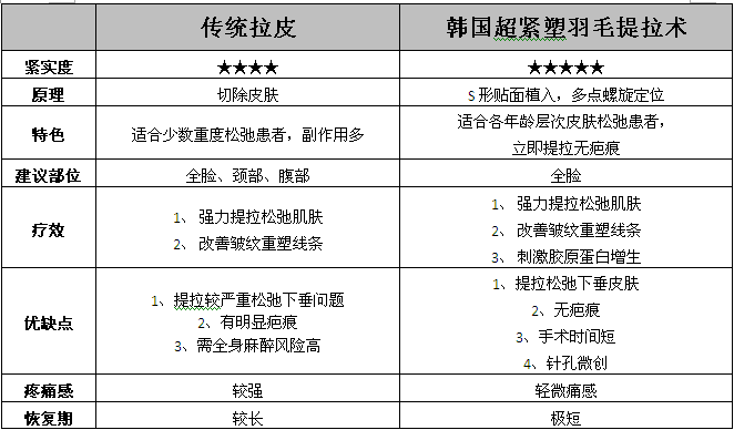 超紧塑羽毛提拉与传统手术除皱相比较: