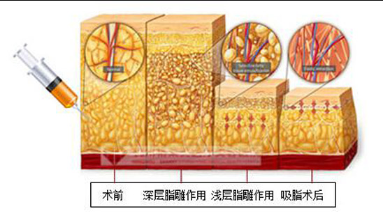 通过负压吸引的方法把身体某一部位多余的脂肪给吸出来,效果。