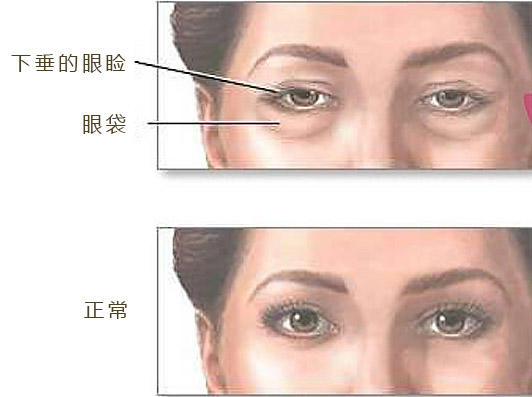【症状:】不存在皮肤松弛,只单纯表现为眼底脂肪轻微脱垂