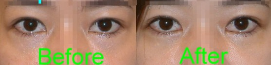 左图:在其他院所做过开放式眼袋摘除术后,残存眼袋 右图:本院进行经由结膜摘除残存眼袋手术后比较