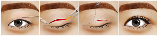埋线法双眼皮:埋线法不像切开法,不需要进行手术,只是通过点线相连,在一段时间后,就会形成重睑,再拆线即可。