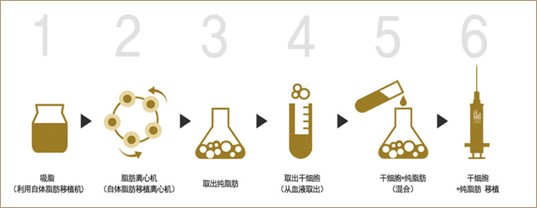奢享定制童颜根据面部凹陷部位,在人体脂肪存活率高的部位合理抽取脂肪量,利用分离机进行活性提取后,用器具将活性较高的脂肪注入到顾客面部凹陷部位。