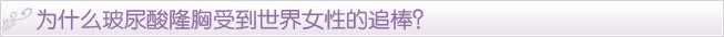 日本是全玻尿酸消耗量*大的,而且,这一大批进口的玻尿酸大部分都打到了胸部里。虽然用玻尿酸丰胸…[详情]