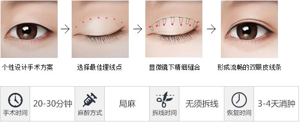 无疤痕,双眼皮线条自然明显,恢复期短,受欢迎程度非常高