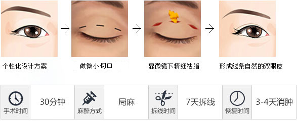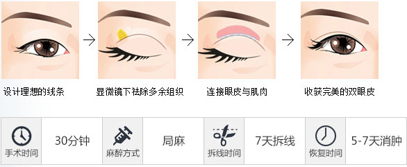 适合人群眼部轻微下垂、眼皮皮肤薄、有弹性,脂肪少的情况