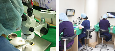 在YNP显微镜下迅速分离毛囊,每小时速度达到2000单位以上, 3000单位整体移植时间控制在4小时以内。