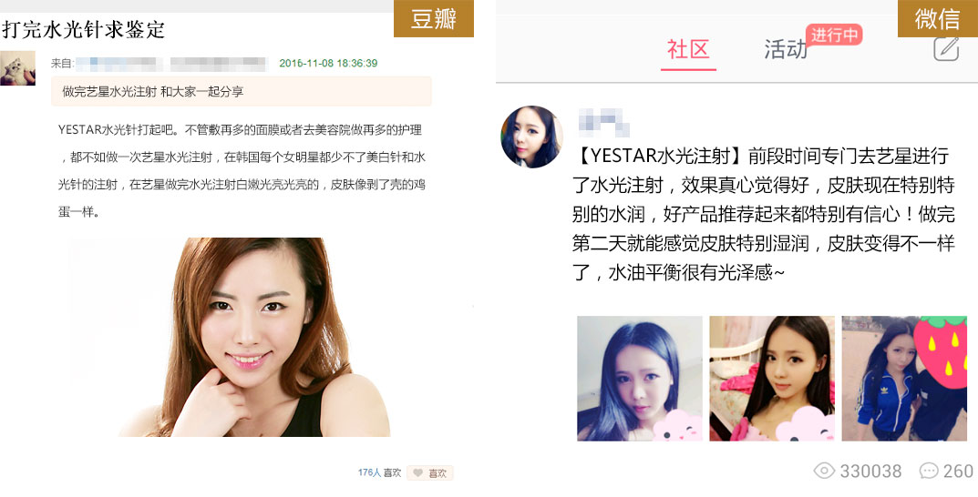 Yestar艺星整形水光补水借助专利智能仪器将具备超高能储水的玻尿酸,并结合小分子BOTOX、维C等,以独特比例均匀分布于真皮层,在皮下形成网状交叉式结构,相当于肌肤真皮层铺上一层高度锁水的面膜,直接填补流逝的营养成分,360°全方位美肌,实现肌肤全面年轻效果。
