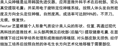 Yestar艺星制定以顾客为中心的个性星级5S服务,以“心有诚,美无价”的服务宗旨,要求每一位工作伙伴要像对待自己的家人一样对待每一位顾客,时刻以顾客的切身利益为先。另外,还实施术后跟踪随访管理制度,艺星客服部会实行定期回访服务,解答您的任何疑问,提供更多护理常识,让您美的安心更放心。