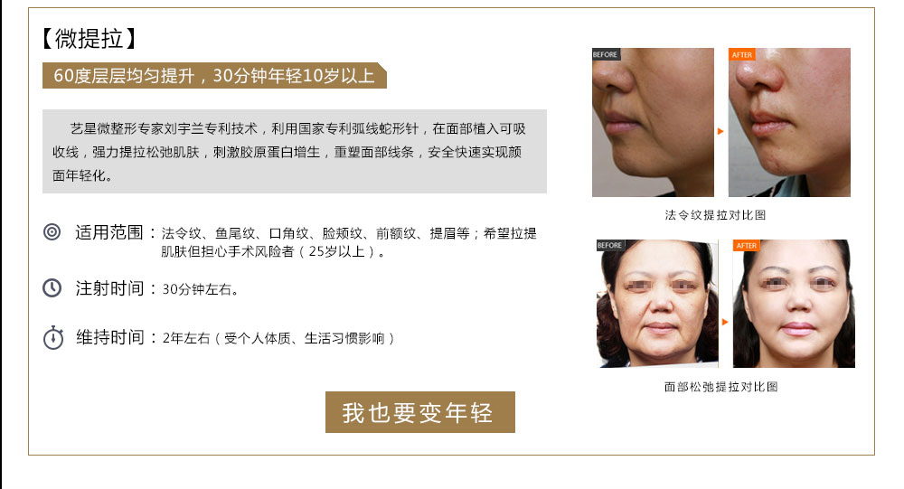 YS三维立体美颜针是微时代的塑颜潮流,标志着除皱塑形年轻化步入新时代。它是全新的面部年轻化管理理念及技术,是传统意义上微整形的技术升级,是艺星特色;具有无可比拟的四大优势。