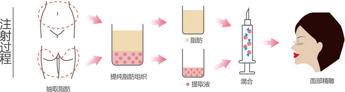 吸取腰、臀等脂肪丰富处的适量脂肪组织,并将其纯化、处理、移植到眼部,以达到卧蚕填充目的。