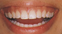 吸引人的微笑:微笑时前牙一直暴露到上龈线,同时可以看到两个中切牙比侧切牙稍宽稍长。尖牙比较尖,长度和中切牙差不多。牙龈组织充满了牙齿间的空隙,并在牙齿的周围形成了一个美丽的曲线。
