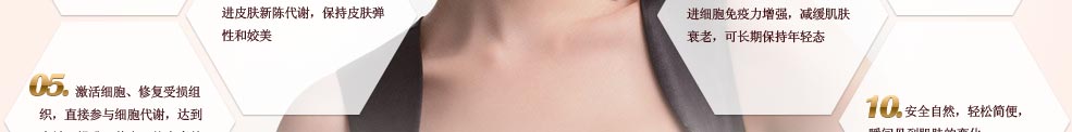 促进人体分泌自体胶原蛋白,弹性蛋白,使皱纹自然长平,同时从根本上改 善皮肤状态,令皮肤光泽细腻有弹性。